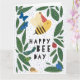 Happy Bee Day! This birthday greeting card features a fun bee in a party hat surrounded by other bug friends. The inside adds to the pun and reads "Hope it's fly". This birthday greeting card is perfect for kids (or pun-loving adults)