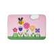Cute digital design featuring a bumblebee, flowers, grass, and a cloud. Colours include yellow, green, pink, purple, blue, black and white.