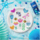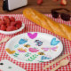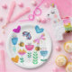 A fun whimsical design of flowers, bees, butterflies and hearts