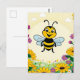 Happy Bee In Colourful Flowers Postcard