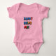 Pink body suit for a baby girl, with primary colour letters, "Happy to be me" great baby shower gift. Personalise by adding the baby's name.