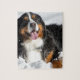 Happy Bernese Mountain Dog In Winter Snow Jigsaw Puzzle