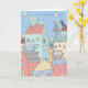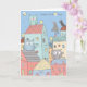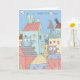 Birthday card depicts a colorful little town with a roof top choir of adorable birds wishing a Happy Bird Day!