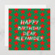 Cool green and little red stars pattern. Click personalise to change the name.