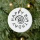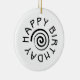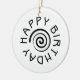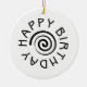 An attractive happy birthday ornament with circular text and a spiral motif.
