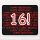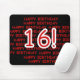 Black, red, and white Happy 16th Birthday design on 16th birthday T-shirts, cards, mugs, buttons, and other 16th birthday items.