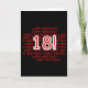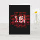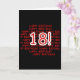 Black, red, and white Happy 18th Birthday design on 18th birthday T-shirts, cards, mugs, buttons, and other 18th birthday items.