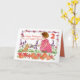 A custom birthday card decorated with a little girl with brown hair playing with her kitten in the garden illustrated with watercolor.  A nice keepsake card that you can personalise with her name and age.  On the inside is another little heart motif and a shade of orange and text that you can customise to fit your needs.
