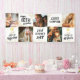 Personalised happy birthday banner featuring a stylish white background that can be changed to any colour, 5 custom photos, gold glitter, cheers glasses, and a modern birthday celebration template that is easy to customise.