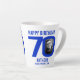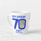 70th birthday two photos in the 0 of 70 mug. Great to add a personal touch to a surprise birthday party. Personalise with your birthday boys photo in the 0 of 70 and personalise with your choice of name. Other matching items are available. Designed by Sarah Trett for www.mylittleeden.com