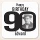 90th birthday black and white photo party paper coasters. Great to add a personal touch to a surprise birthday party. Personalise with your birthday boys or girls photo in the 0 of 90 and personalise with your choice of name. Design by Sarah Trett.