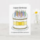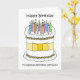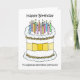 A cartoon of a large birthday cake covered in lit candles and accompanied by the words 'Happy Birthday to a Special Aerobics Instructor'.