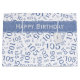 This modern, numeric design is a blue and white age-number pattern with the milestone number 105 repeated in varied sizes and angles in an all-over random print. There is a blue banner and a gift tag you can personalise with your text, name, initial, monogram and more.