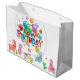 A Large Gift Bag Of Dancing Alpacas That's Colourful With Lettering And Balloons
