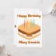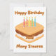 This invitation features a design with the words "Happy Birthday And Many S'mores" in a more sugar print font showcasing brown letters tan outline displaying a cartoon style s'more toped with five different colour birthday candles in this birthday theme and style. Printed on a classic, all around paper 17.5 pt thickness with an uncoated matte finish with an eggshell texture made and printed in the USA with "Happy Birthday" printed on the back.