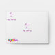 This is an invitation envelope that matches the invitation and RSVP card "Happy Birthday and Stars". This birthday sign or banner is designed with "Happy Birthday" in a rose colour. Stars in purple, red, blue and multi colours, and a bright yellow sun with rays are used as a backdrop. On the back is the banner with a rainbow coloured backround added along with a purple border. This envelope can be customised with all your own information.