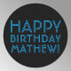 Happy Birthday (ANY NAME) | Blue & Black (or diy) Classic Round Sticker