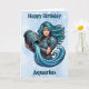 A fun horoscope sign Aquarius birthday card Inside says the dates and traits of an Aquarius and a sweet birthday message. The graphics have a beautiful woman carrying a container of water as Aquarius represents the water bearer.
