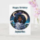 A fun horoscope sign Aquarius birthday card with an inside surprise coloring page. The front has a pretty celestial illustration of a water bearer African-American woman in front of stars and a full moon/