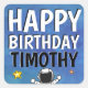 Adorable astronaut in a bright blue starry sky. Text reads "Happy Birthday" and can be personalised with your own name. Great for kids' birthdays or space themed parties.