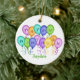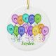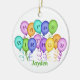 As a party decoration or as a memento to last throughout the year, use this lively Happy Birthday Balloons Ornament. Happy Birthday Balloons is an original illustration of two rows of multi-colour balloons in bright vivid colours with coordinating streamers. Each balloon features a single letter in a colour matching the balloon when all put together spells out “Happy Birthday”. Personalise this festive design by adding the name of the special birthday person under the balloons. Coordinate all your party needs by collecting all the Happy Birthday Balloons Products.