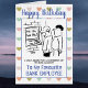 Bank Employee Cartoon. Cashpoint machine laughs at a customer. Personalize with your choice of wording and inside message. Birthday card for a bank worker or bank teller.