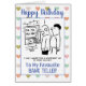 Bank Teller Cartoon. Cashpoint machine laughs at a customer. Personalise with your choice of wording and inside message.