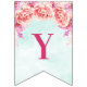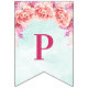 Happy Birthday banner with pretty pink watercolor flowers with a light blue background and pink text.