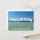 This beautiful beach Happy Birthday postcard is custom made with your coastal company name over the pretty ocean waves. Gorgeous seaside business birthday postcards for marketing to past clients and current corporate colleagues. Modern white script across the coast horizon. Personalised blue script on the back.