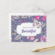 Happy Birthday, Beautiful. Pink Lilac Floral Pattern and Butterfly Watercolor Painting personalised Birthday Postcard for her. Matching greeting cards and gifts available in the Birthday Category of our Store.