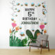 Happy Birthday Bees Flowers Garden Backdrop Tapestry is great to welcome guest to a birthday party or a child's gift for their bedroom decor. This is a fun piece to add to their room especially if they like bees and plants. Personalise it. May be used for other events.