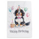 Cute illustration of Bernese Mountain dogs all dress in birthday attire. Perfect for dog lovers or pets birthday!