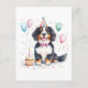 Cute illustration of Bernese Mountain dogs all dress in birthday attire. Perfect for dog lovers or pets birthday!