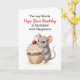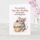 An adorable birthday card for a best friend featuring an illustration of a cute little mouse carrying a vanilla cupcake with sprinkles and a cherry on top! All text on this card can be edited in the personalize area.