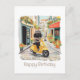 Happy Birthday Black Doodle Riding Scooter Postcard