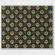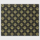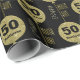 Gold simulated glitter balloons with strings make a continuous pattern out of the age 50 and the birthday person's name. "Happy Birthday" hugs the balloon string on a black background. The perfect wrapping paper for any glamourous 50 year old.