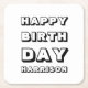 Happy Birthday black white custom name modern Square Paper Coaster