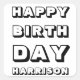 Happy Birthday black and white custom name modern bold Square Stickers, labels. Available in many colours.