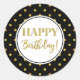 Happy Birthday Black White Gold Dots Classic Round Sticker