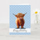 HAPPY BIRTHDAY BLUE BOY LONG HAIR BROWN COW CARD