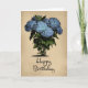 Celebrate a birthday with this pretty blue hydrangea flowers vintage botanical birthday card.
