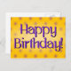 Happy Birthday Blue Polka Dot Text Yellow Bkgrd Postcard