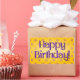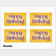 Happy Birthday Blue Polka Dot Text Yellow Bkgrd Rectangular Sticker