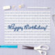 "Happy Birthday!" tiled in blue, all on a white background.