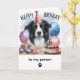 This birthday card features a charming Border Collie dog with a birthday cake and balloons, making it a festive celebration. Include a special message inside, all from the dog! Perfect for any Border Collie lover. "AI-generated artwork with design direction by Susang6"