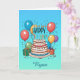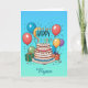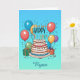 Happy Birthday Cake and Balloons on Ombre Blue Card