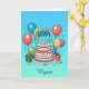 A fun and joyous illustrated card with birthday cake and colourful balloons on an Ombre Blue background. You can change the name to make it special for the birthday person or leave it blank (no name) to make it a generic card. You can also change the birthday message inside with your own greetings and wishes. Celebrate the birthday occasion with joy. Also available in an Ombre Pink version.