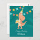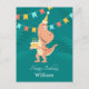 This Happy Birthday Postcard features a cartoon illustration of cute funny Dinosaur wearing birthday hat and holding cake with three lighted candles. Great Card for kid's birthday! You can easily personalize the text (greeting and name) at the lower part of the card using Zazzle online tools. If you need help to personalize this card, don't hesitate to contact me via Zazzle, please.