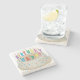 The coasters are gorgeous, a quality feel and heavy weight. They look like a precious archeological find. A rustic stone juxtaposed with a modern floral black and white print. I like the way the print goes slightly imperfect on the cut stone edges giving them a kind-of natural beauty.