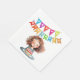 A Colourful Happy Birthday Party Paper Napkins Designed With Birthday Girl Blowing Out Her Candles with Happy Birthday Banner